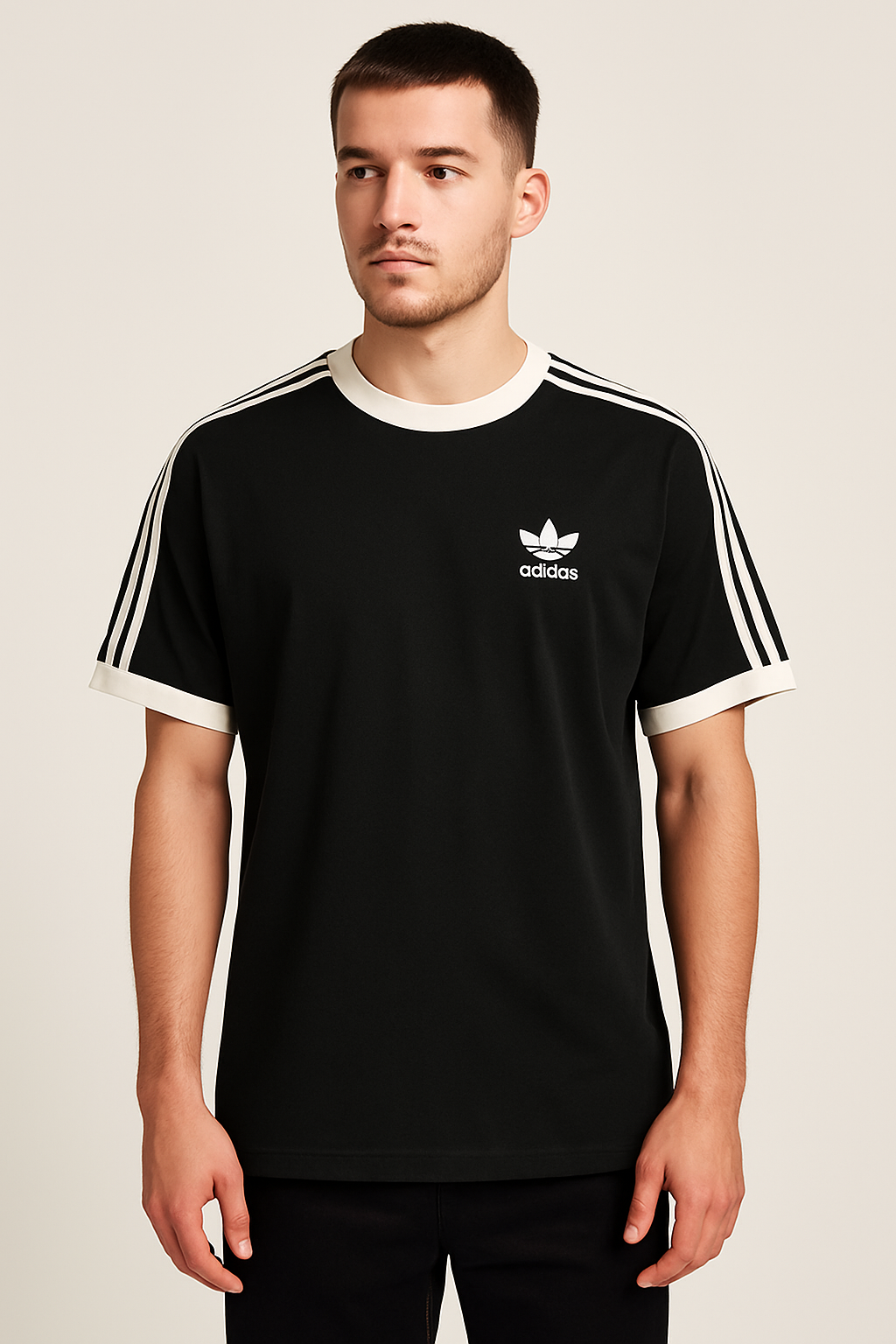 Adidas Men's Black Crew Neck Cotton T-Shirt with...