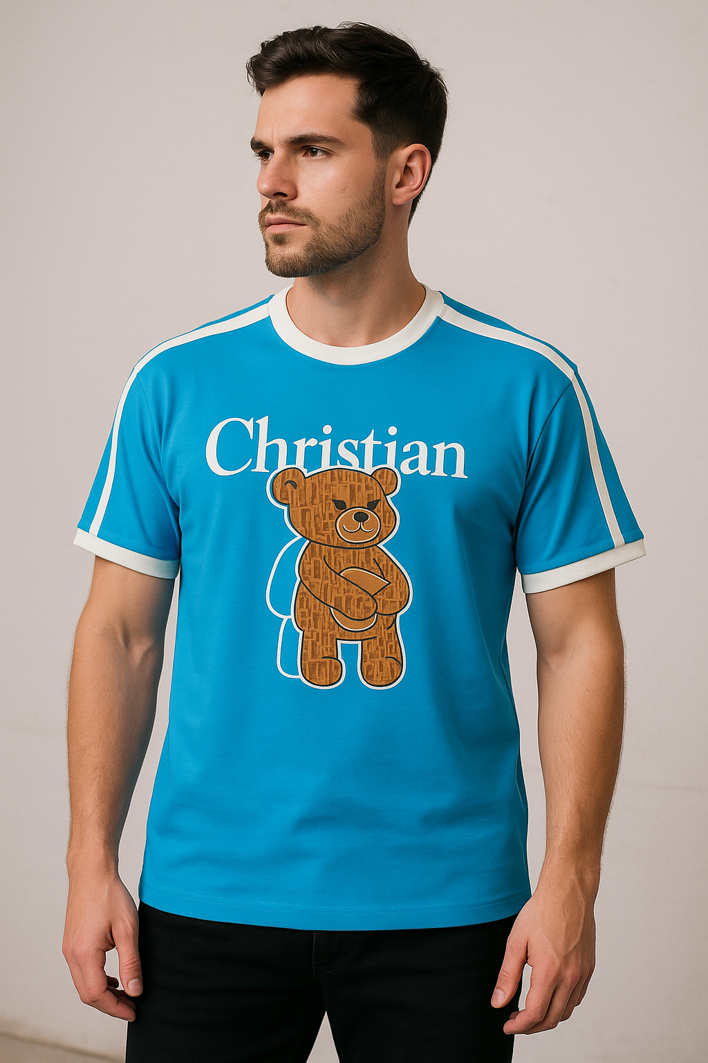 Christian Bear Graphic Blue Men's T-Shirt – Casu...